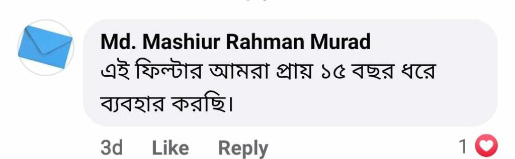 আমাদের ফিল্টার সম্পর্কে কাস্টমারের মূল্যবান মতামত